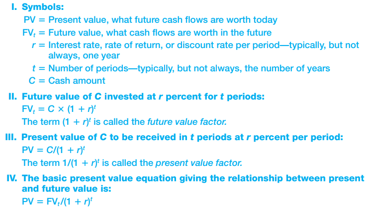 - Present Value PV = \cfrac{1\$}{(1+r)^t}